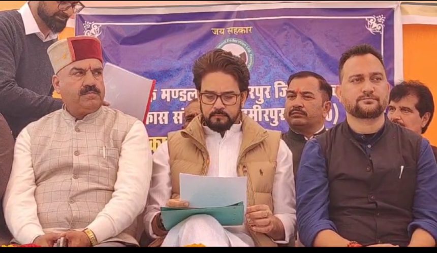हमीरपुर,अरविन्द सिंह(TSN)-देश में आम आदमी पार्टी ने कांग्रेस के भ्रष्टाचार का रिकॉर्ड तोड़कर के पहले स्थान हासिल कर लिया है।यही वजह है कि भ्रष्टाचार में फंसे आम आदमी पार्टी के मुख्यमंत्री और उपमुख्यमंत्री अपने पदों से त्यागपत्र दे चुके हैं और एक-एक करके उनके दूसरे मंत्री भी पार्टी को छोड़कर जा रहे हैं।बीते दिन आम आदमी पार्टी के कैबिनेट मंत्री कैलाश गहलोत ने पद से त्यागपत्र दे दिया था और आज वह भारतीय जनता पार्टी को ज्वाइन करेंगे यह बात पूर्व केंद्रीय मंत्री एवं सांसद अनुराग ठाकुर ने हमीरपुर के बाई पास में 71 वीं अखिल भारतीय सहकारी सप्ताह कार्यक्रम में बतौर मुख्यतिथि शिकरत करने के दौरान कही।कार्यक्रम स्थल पर पहुंचने पर सदर हमीरपुर के विधायक आशीष शर्मा और बड़सर विधानसभा क्षेत्र के विधायक इंद्र दत्त लखनपाल तथा सहकारी सभा के जिला अध्यक्ष यशवीर पठनीय सहित अन्य गणमान्य लोगों ने फूल माला पहना कर स्वागत किया।