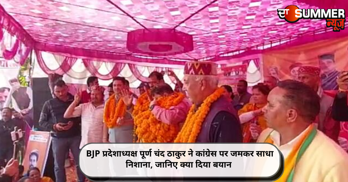 मंडी/परी शर्मा: जहां एक ओर भाजपा प्रदेशाध्यक्ष ने द्रंग विधानसभा से भाजपा प्रत्याशी पूर्ण चंद ठाकुर के पक्ष में समर्थन मांगा। वहीं वे कांग्रेस पार्टी पर भी जमकर बरसे। कश्यप ने कहा कि आज कांग्रेस पार्टी टुकड़ों में बंटी है और हर कोई मुख्यमंत्री की दौड़ में है। कांग्रेस में नेतृत्व की कमी, ना नेता, ना नीति, ना नियत। द्रंग विधानसभा क्षेत्र में भाजपा प्रत्याशी के पक्ष में प्रचार करने पहुंचे भाजपा प्रदेशाध्यक्ष सुरेश कश्यप ने कांग्रेस पार्टी पर जमकर तंज कसे।