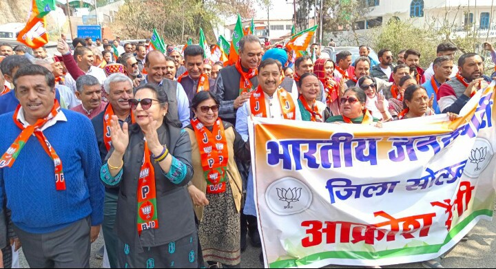 सोलन : योगेश शर्मा- शनिवार को सोलन शहर के मॉल रोड़ पर पीडब्ल्यूडी रेस्ट हाउस से ओल्ड डीसी आफिस तक भाजपा द्वारा जन आक्रोश रैली निकाली गई। जिसमे भाजपा के प्रदेश सह प्रभारी संजय टंडन विशेष रूप से मौजूद रहे। इस दौरान भाजपा सरकार द्वारा खोले गए संस्थानों को डिनोटिफाइ करने को लेकर भाजपा नेताओं ने रैली निकालकर नारेबाजी करते हुए अपना विरोध प्रदर्शन किया।