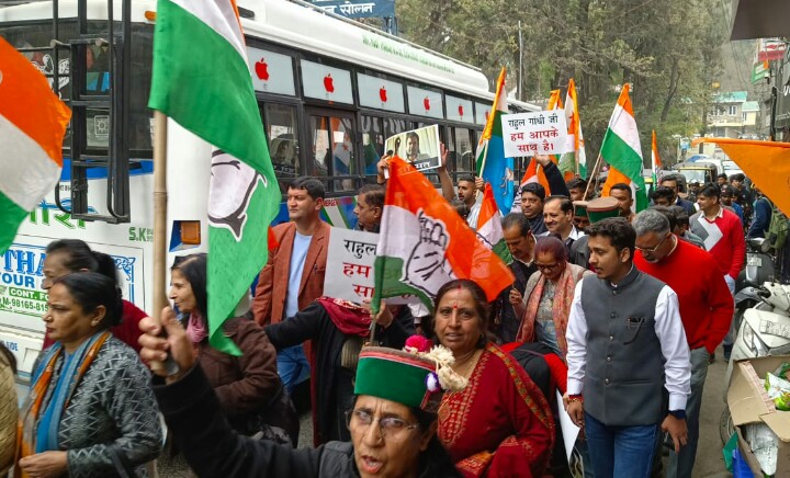 सोलन : योगेश शर्मा- सूरत कोर्ट द्वारा राहुल गांधी को मानहानि केस में 2 साल की सजा सुनाए जाने को लेकर दिल्ली से लेकर हिमाचल में आज प्रदर्शन किए जा रहे हैं । सोलन में भी इसको लेकर जिला स्तर पर जिला कांग्रेस ने धरना प्रदर्शन किया गया है।कांग्रेस पार्टी राहुल गांधी को लेकर आए कोर्ट के फैसले को राजनीति से प्रेरित बता रही है।