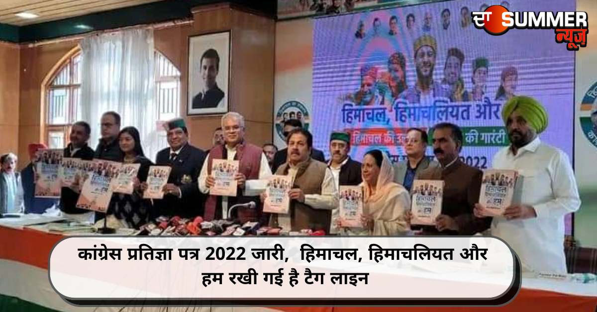 कांग्रेस प्रतिज्ञा पत्र 2022 जारी, हिमाचल, हिमाचलियत और हम रखी गई है टैग लाइन