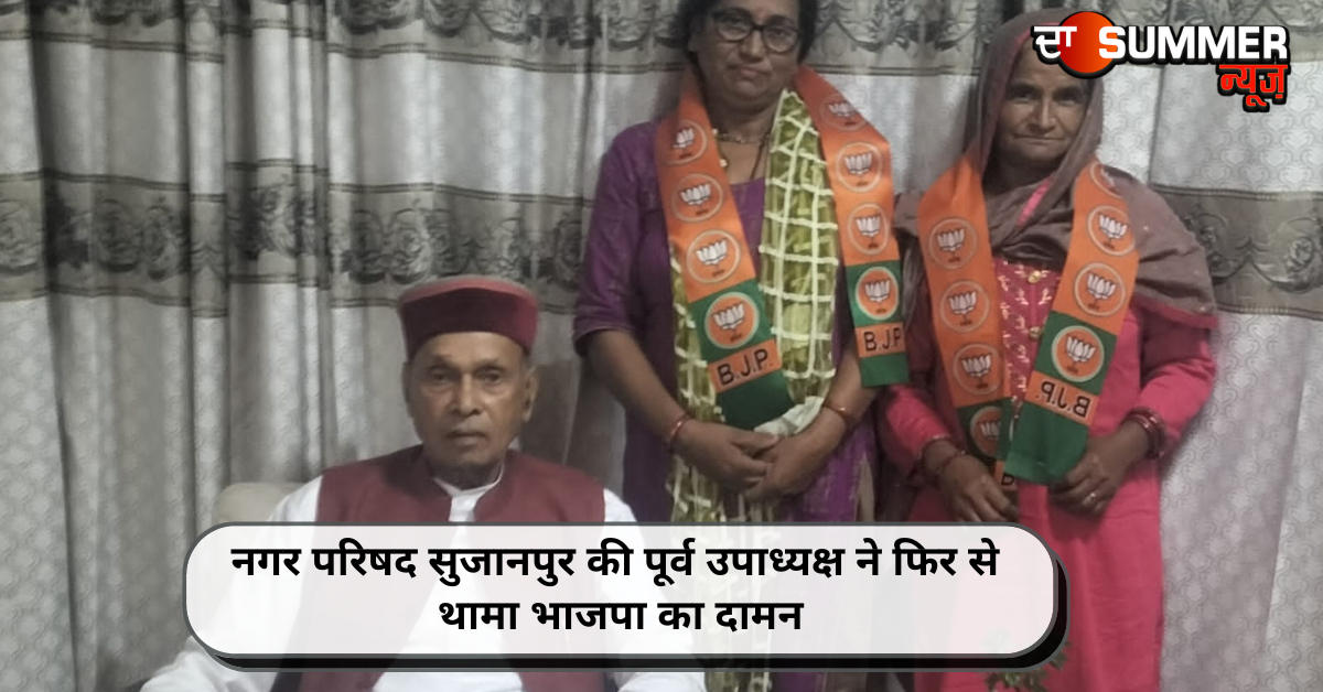 अरविंदर सिंह, हमीरपुर: नगर परिषद सुजानपुर की पूर्व उपाध्यक्ष कमलेश कुमारी चौधरी ने एक बार फिर से भाजपा परिवार में वापसी कर ली है। आज उन्होंने पूर्व मुख्यमंत्री प्रेम कुमार धूमल के निवास स्थान समीरपुर में पहुंचकर भारतीय जनता पार्टी का दामन थामा। उन्होंने कहा कि वह भाजपा की सिपाही थी, है, और रहेंगी। इस मौके पर उनकी बड़ी बहन जगा देवी ने भी भारतीय जनता पार्टी का दामन थामा।