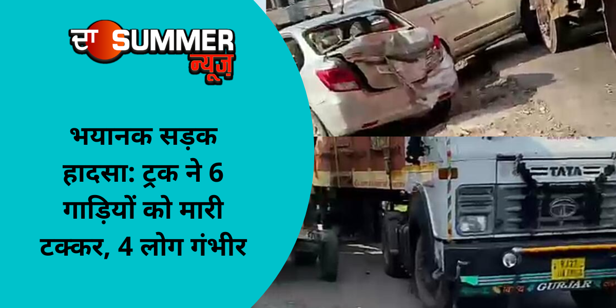 भयानक सड़क हादसा: ट्रक ने 6 गाड़ियों को मारी टक्कर, 4 लोग गंभीर