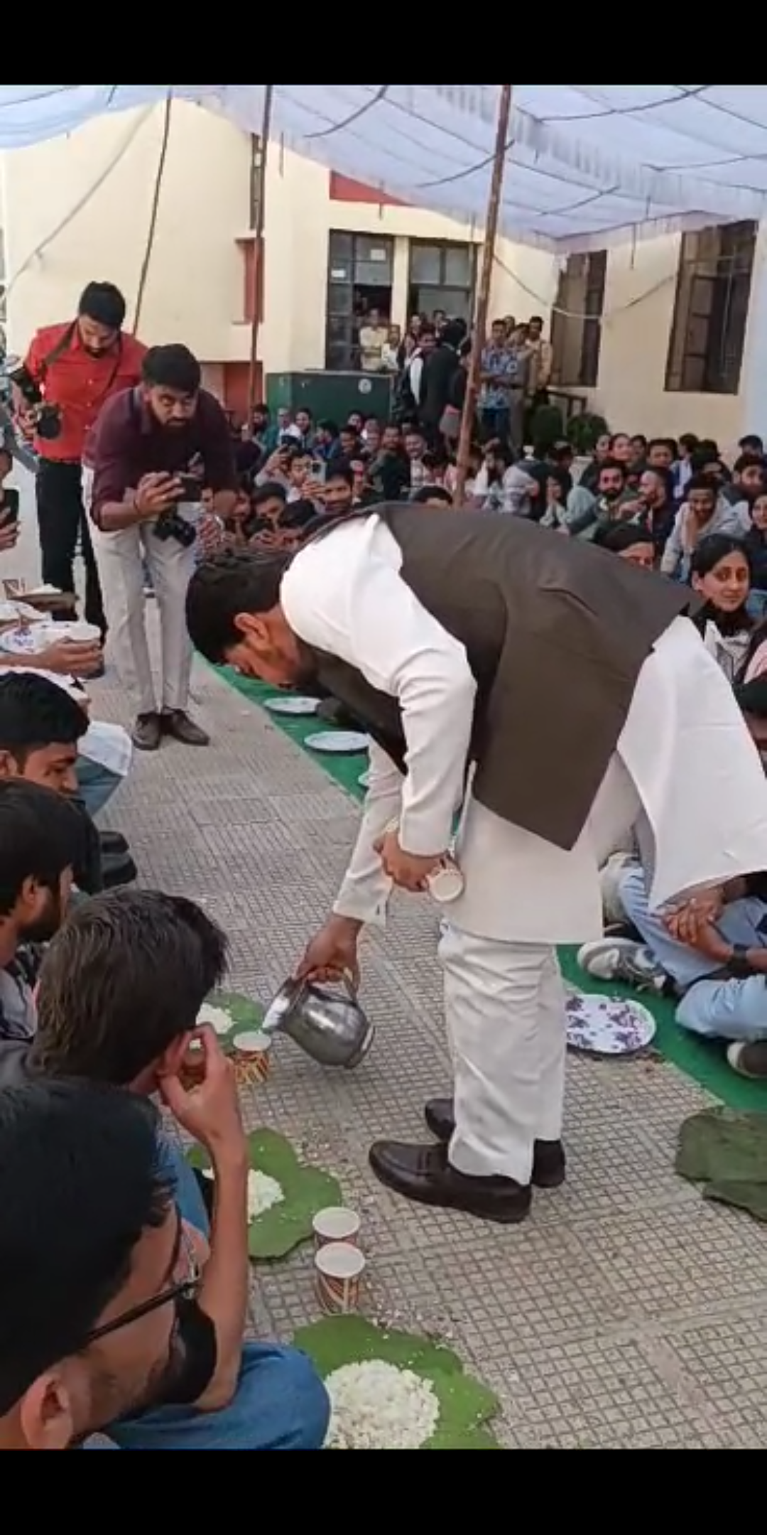 केंद्रीय मंत्री अनुराग ठाकुर की सादगी, एचपीयू में आयोजित धाम में खुद बांटा पानी