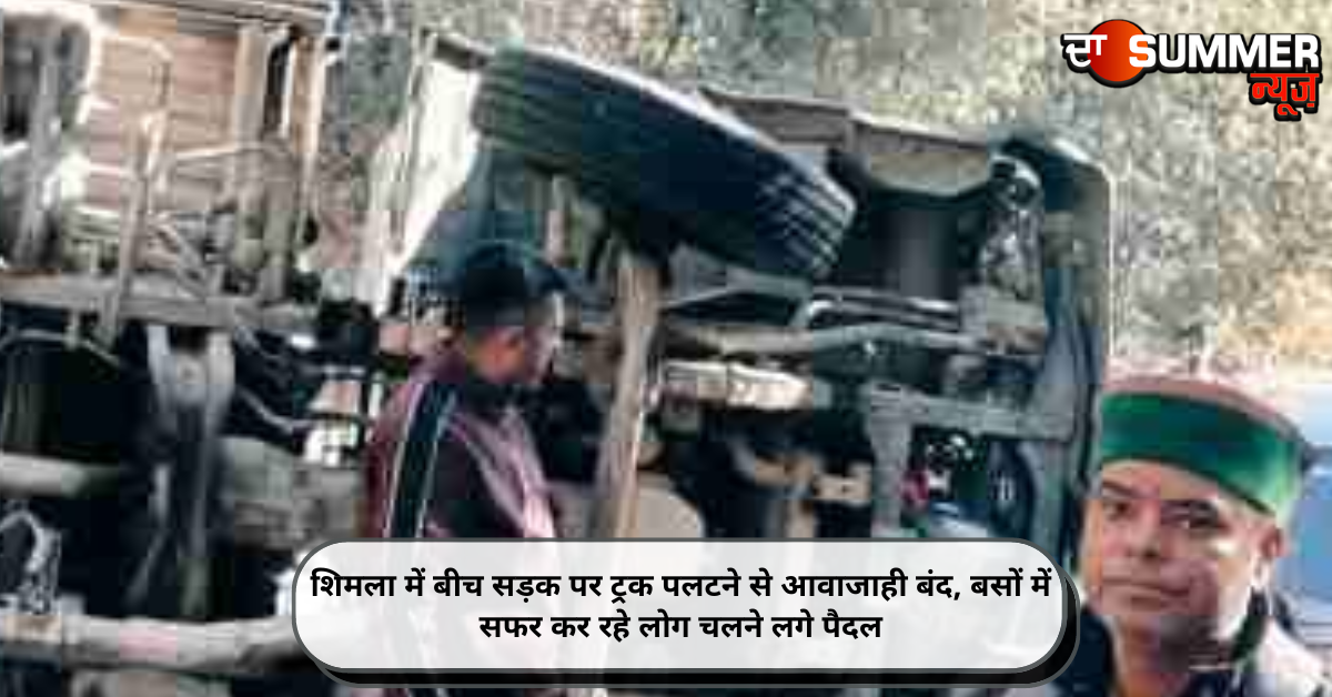 शिमला में बीच सड़क पर ट्रक पलटने से आवाजाही बंद, बसों में सफर कर रहे लोग चलने लगे पैदल