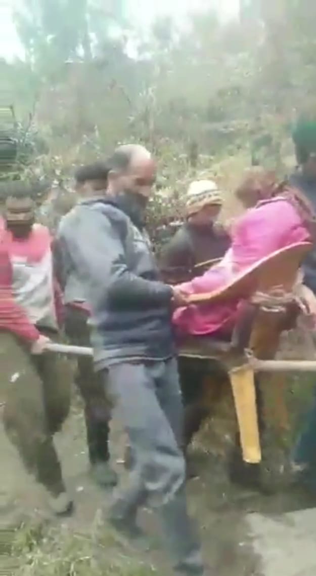 हिमाचल में विकास की तस्वीर:गर्भवती महिला को कुर्सी पर बांधकर 3 किलोमीटर पैदल चलकर पहुंचाया अस्पताल