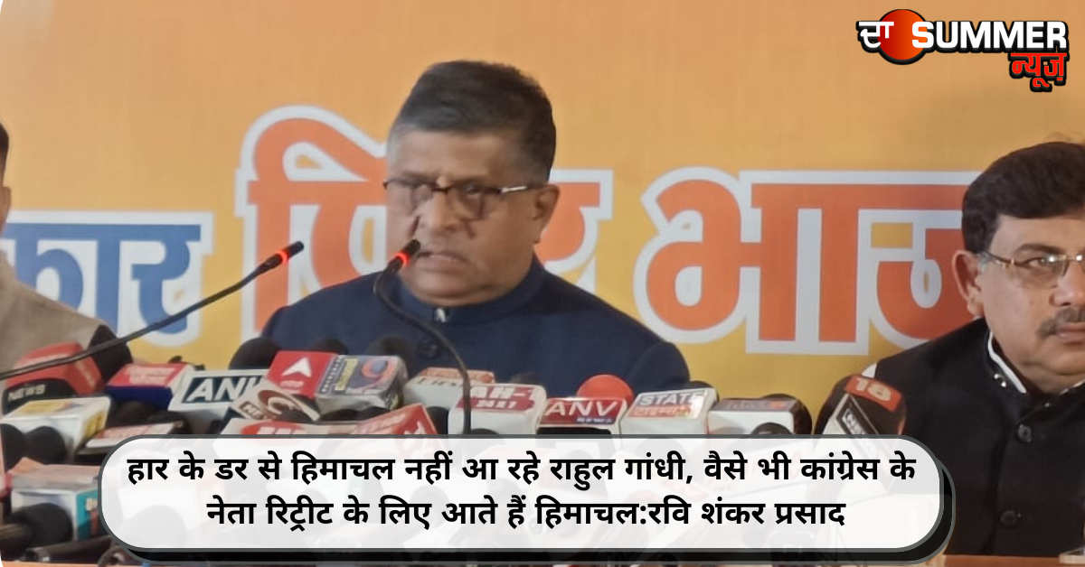 हार के डर से हिमाचल नहीं आ रहे राहुल गांधी, वैसे भी कांग्रेस के नेता रिट्रीट के लिए आते हैं हिमाचल:रवि शंकर प्रसाद
