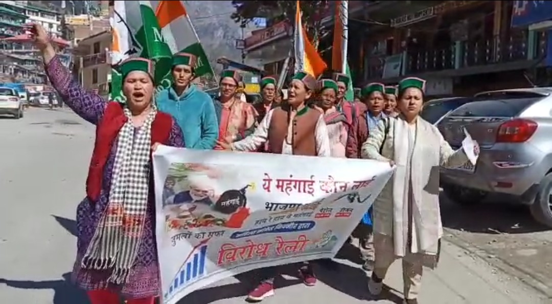 गैस सिलेंडर के दामों में बढ़ोतरी पर महिला कांग्रेस का रिकांगपिओ में प्रदर्शन