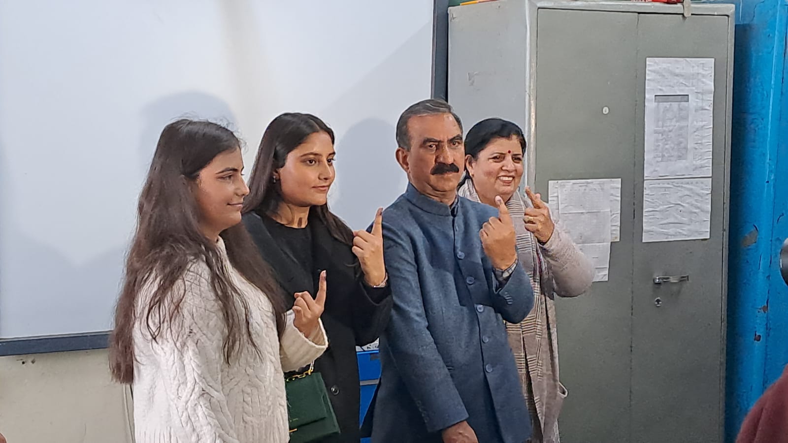 मुख्यमंत्री ने परिवार सहित छोटा शिमला वार्ड में डाला वोट, बोले राजधानी में बिजली, पानी का बिल देने वाले को हैं वोट देने का अधिकार