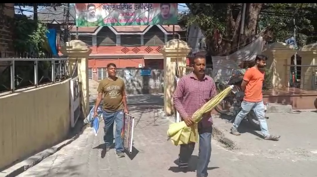 अतिक्रमणकारियों पर नगर परिषद हमीरपुर की कार्रवाई, सामान किया ज़ब्त