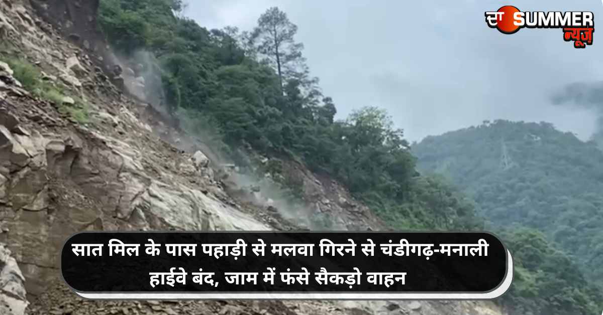 सात मिल के पास पहाड़ी से मलवा गिरने से चंडीगढ़-मनाली हाईवे बंद, जाम में फंसे सैकड़ो वाहन