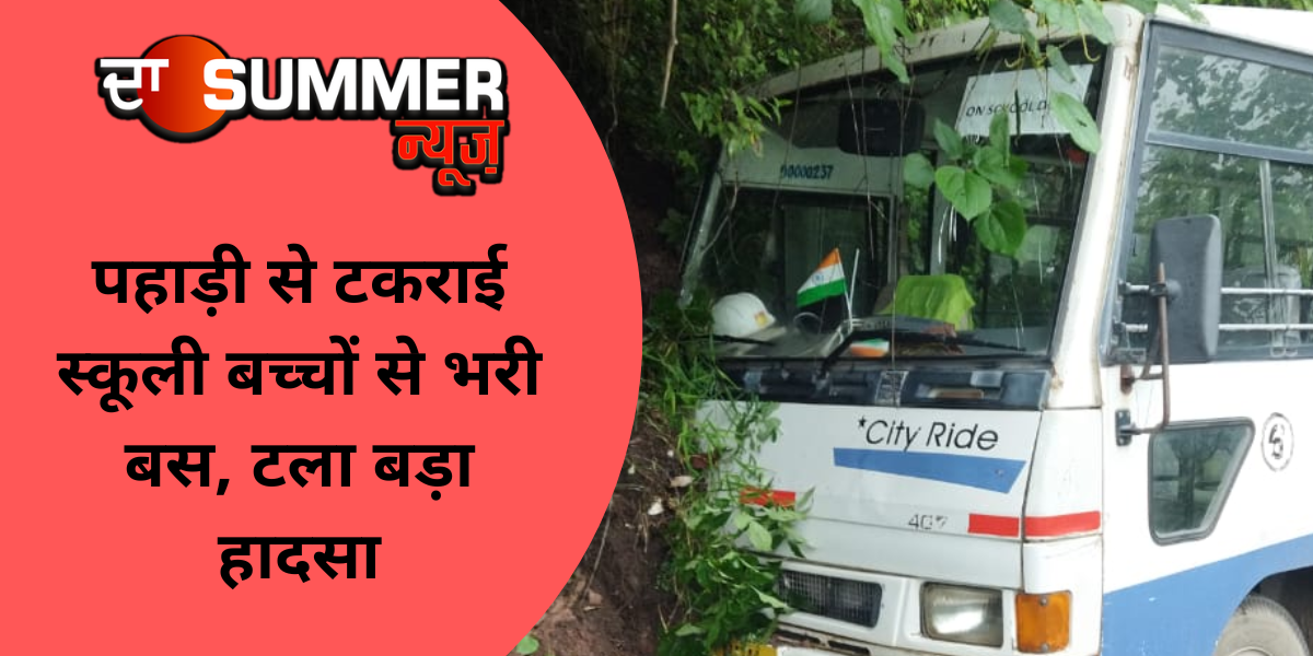 पहाड़ी से टकराई स्कूली बच्चों से भरी बस, टला बड़ा हादसा