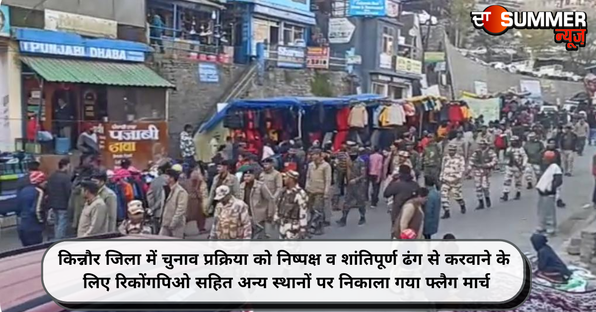 किन्नौर जिला में चुनाव प्रक्रिया को निष्पक्ष व शांतिपूर्ण ढंग से करवाने के लिए रिकोंगपिओ सहित अन्य स्थानों पर निकाला गया फ्लैग मार्च