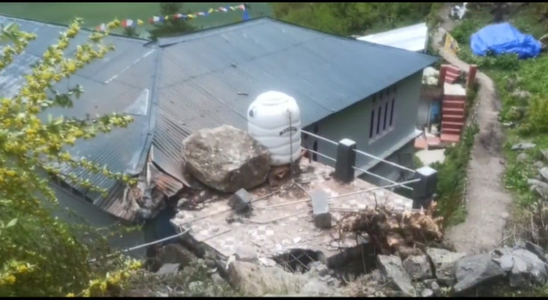 काफनू में भूस्खलन,दो मकानों पर गिरे भारी पत्थर, क्षतिग्रस्त हुए मकान