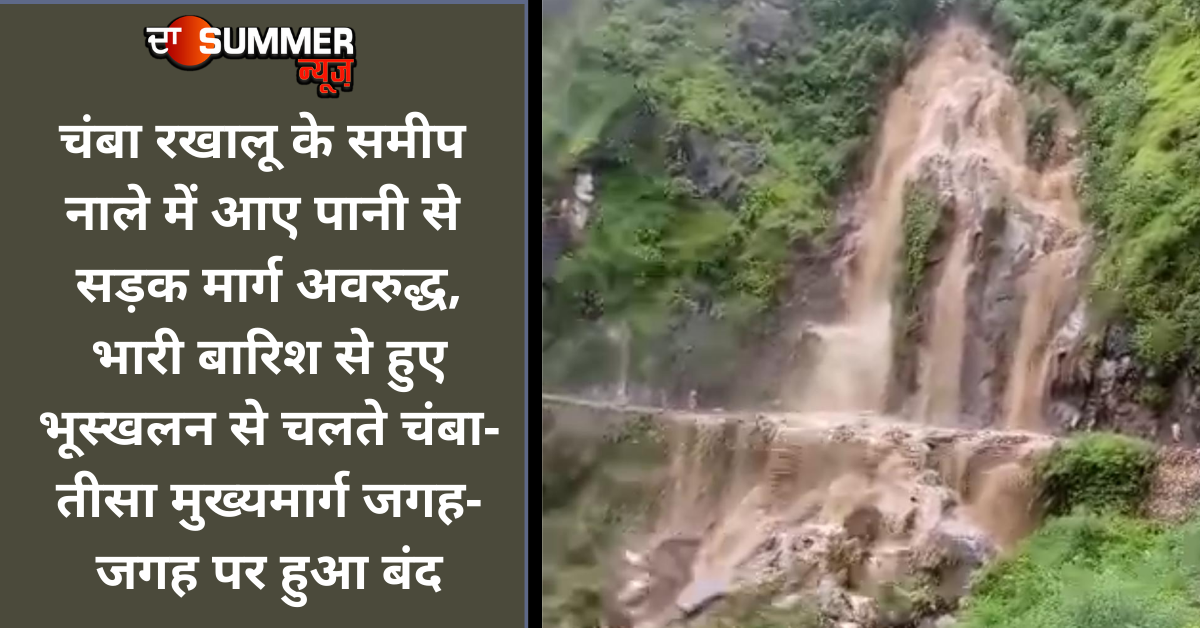 चंबा रखालू के समीप नाले में आए पानी से सड़क मार्ग अवरुद्ध,भारी बारिश से हुए भूस्खलन से चलते चंबा-तीसा मुख्यमार्ग जगह-जगह पर हुआ बंद