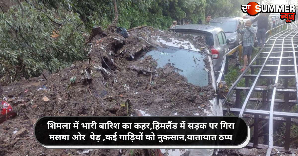 शिमला में भारी बारिश का कहर,हिमलैंड में सड़क पर गिरा मलबा ओर पेड़ ,कई गाड़ियों को नुकसान,यातायात ठप्प