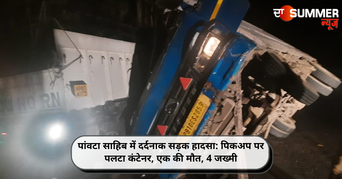 पांवटा साहिब में दर्दनाक सड़क हादसा: पिकअप पर पलटा कंटेनर, एक की मौत, 4 जख्मी