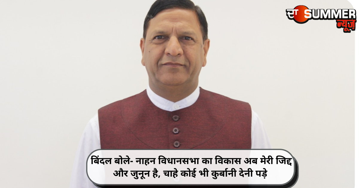 बिंदल बोले- नाहन विधानसभा का विकास अब मेरी जिद्द और जुनून है, चाहे कोई भी कुर्बानी देनी पड़े