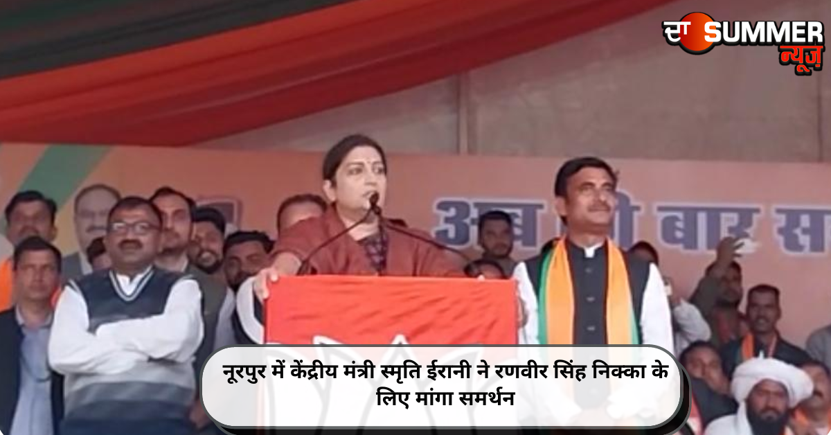 नूरपुर में केंद्रीय मंत्री स्मृति ईरानी ने रणवीर सिंह निक्का के लिए मांगा समर्थन