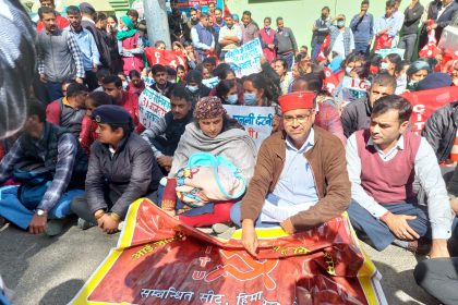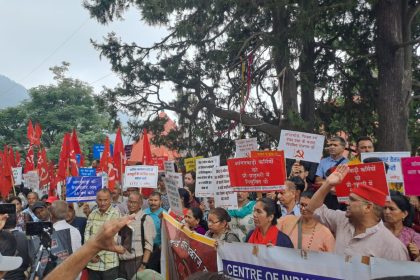 सीटू का एचआरटीसी एमडी कार्यालय में हल्ला बोल, बस स्टैंड से तहबाजारियों को हटाने पर किया विरोध