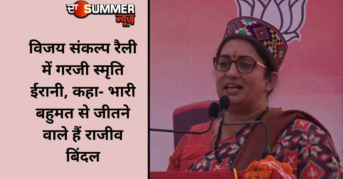 विजय संकल्प रैली में गरजी स्मृति ईरानी, कहा- भारी बहुमत से जीतने वाले हैं राजीव बिंदल