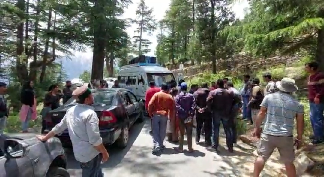 कल्पा में टूरिस्ट व स्थानीय व्यक्ति के वाहन में हुई आपसी ट+क्कर,सवारों को आई हल्की चो+टें