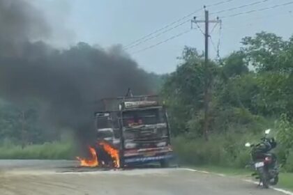 हिलटॉप डमटाल दुर्गा मंदिर के पास ट्रक में लगी आग, जलकर हुआ राख