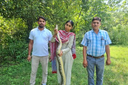 ऊना की स्नेक कैचर दामिनी ने एक बार फिर पकड़ा भारी भरकम अज़गर, रेक्स्यु कर जंगल में छोड़ा