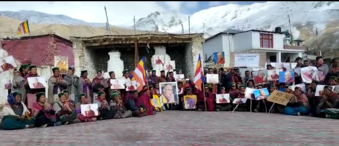 नाकों में बौद्ध धर्म गुरु दलाई लामा के सर्मथन में सड़कों पर उतरे ग्रामीण, मीडिया के खिलाफ़ जताया विरोध