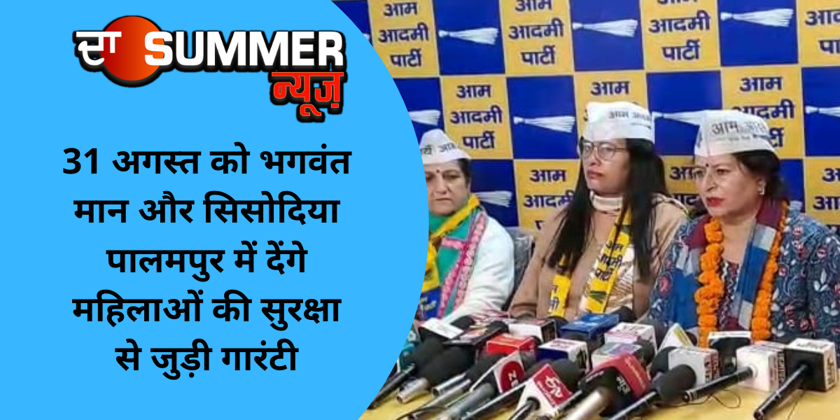 31 अगस्त को भगवंत मान और सिसोदिया पालमपुर में देेंगे महिलाओं की सुरक्षा से जुड़ी गारंटी
