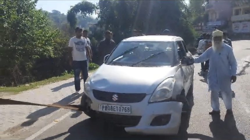 चिंतपूर्णी में पंजाब नकोदर से आए श्रद्धालुओं की गाड़ी हुई दुर्घ+टना का शिकार, बाल-बाल बचे गाड़ी में सवार श्रद्धालु