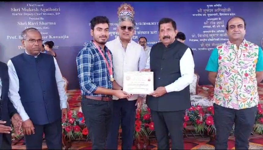 राकेश,ऊना(TSN): जिला ऊना के स्लोह में बनी ट्रिपल आईटी ने मंगलवार को अपना दूसरा संस्थान दिवस समारोह मनाया। इस समारोह में हिमाचल प्रदेश के डिप्टी सीएम मुकेश अग्निहोत्री ने मुख्यतिथि के रूप में शिरकत की। ट्रिपल आईटी स्टाफ की ओर से डिप्टी सीएम का स्वागत किया गया और उन्हें सम्मानित किया गया। इस दौरान मुख्य तिथि ने ट्रिपल आईटी में बनने वाले तालाब का शिलान्यास भी किया।