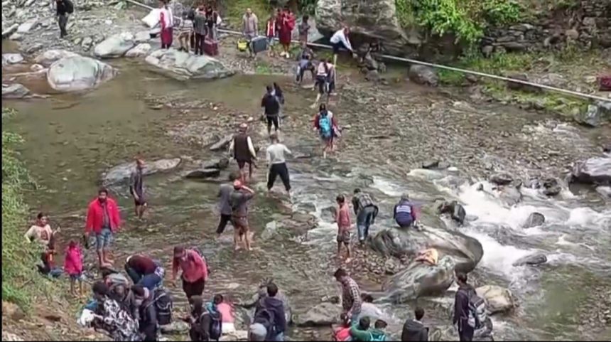 Kullu,Manminder(TSN)-जिला कुल्लू के बंजार विधानसभा क्षेत्र के मंगलौर में रात के समय पुल टूटने के चलते ओट से बंजार का आपसी संपर्क कट गया है। ऐसे में पुल टूटने की सूचना मिलते ही प्रशासनिक अधिकारी मौके पर पहुंच गए हैं।वहीं सड़क के दोनों और फंसे हुए वाहनों के लिए अब मंगलौर खड्ड से एक वैकल्पिक सड़क मार्ग तैयार किया जा रहा है। शनिवार शाम तक इस सड़क मार्ग को तैयार कर लिया जाएगा और उसके बाद यहां फंसे हुए सैलानियों के वाहनों को भी निकाल लिया जाएगा। पुल टूटने की सूचना मिलते ही बंजार के एसडीएम और एपीएमसी कल्लू के अध्यक्ष राम सिंह मियां भी मौके पर पहुंचे।
