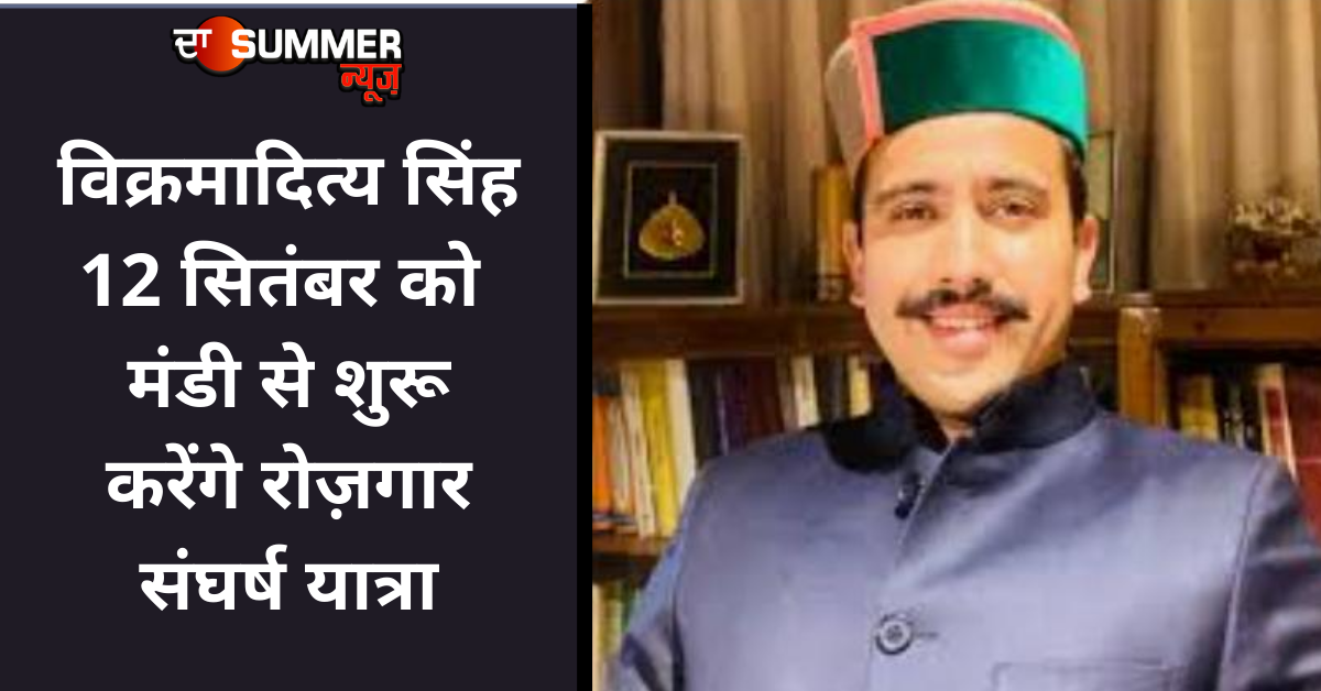 प्रदेश कांग्रेस सचिव युवा कांग्रेस के सह प्रभारी वेद प्रकाश शर्मा ने बताया कि विक्रमादित्य सिंह 12 सितंबर को सुबह 10 बजे करसोग व दोपहर 2 बजे सराज विधानसभा क्षेत्र के जनझेली में युवा रोजगार यात्रा का नेतृत्व करेंगे। इस दिन रात्रि विश्राम थुनाग में रहेगा।